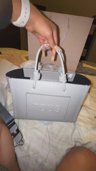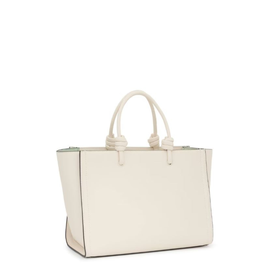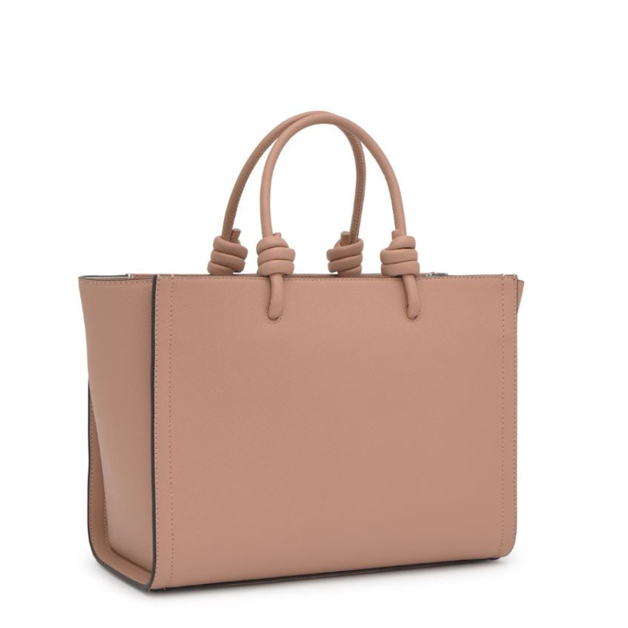 A bolsa vem em formato tote ou “shopper” de tamanho médio, caracterizada por linhas simples e silhueta estruturada. A sua cor bege suave e neutra confere-lhe uma versatilidade excepcional, facilitando a combinação com uma infinidade de looks, desde os mais casuais aos mais formais. O design é clean, mostrando a qualidade do material e a simplicidade sofisticada.